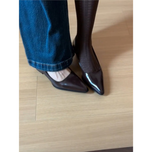 羊皮版~复古高跟鞋女一脚蹬尖头气质百搭单鞋浅口粗跟真皮中古鞋