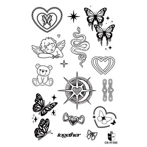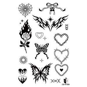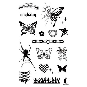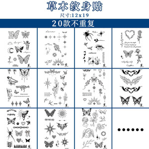 y2k蝴蝶爱心蜘蛛款草本纹身贴持久7-15 天防水耐磨个性炫酷果汁贴