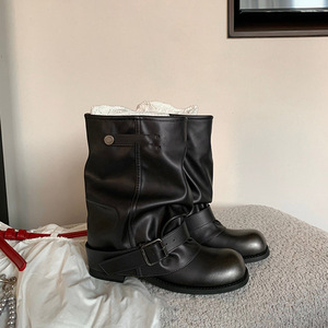 葡萄妈同款 辣妹裤管靴~ 时髦废土风褶皱扣带舒适西部短靴女秋季