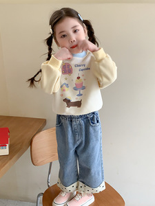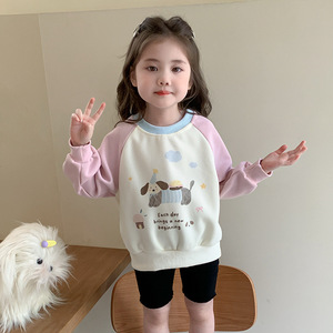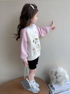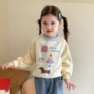2025秋款新款卡通拼色卫衣韩版长袖女童上衣洋气网红童装一件代发