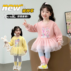 春秋季时尚洋气女童2025新款圆领两件套童装儿童中小童套装宝宝