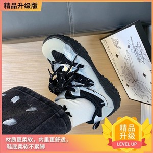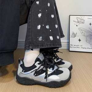 潮酷绑带黑色薄款老爹鞋女2025秋季新款户外网面透气休闲运动鞋女