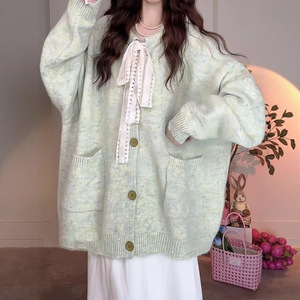 大板型甜美宽松法式针织衫开衫2025秋冬新款慵懒风高级蝴蝶结毛衣