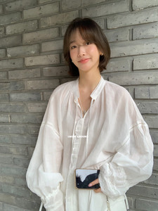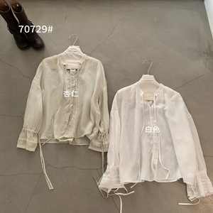 i miss韩标2025秋季新款法式天丝麻喇叭袖系带花边v领衬衫女衬衣