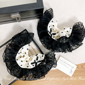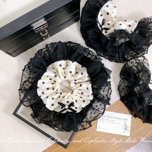 2025秋季新款波点蕾丝蝴蝶结大肠发圈黑色超仙大号高弹力发绳发饰