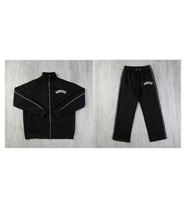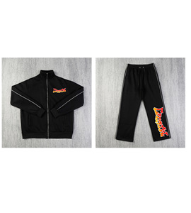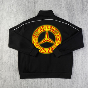 跨境美式复古Corteiz恶魔岛印花夹克加厚立领套装拉链嘻哈男裤ins