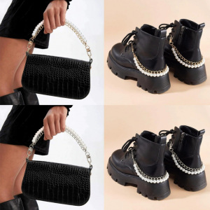现货小香手机链防丢手机挂绳水杯手提珍珠双链条手腕绳包包装饰链