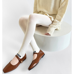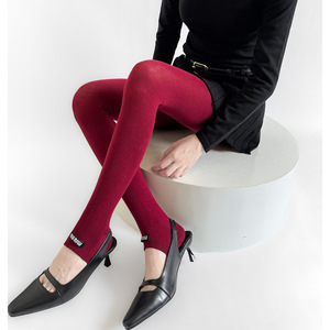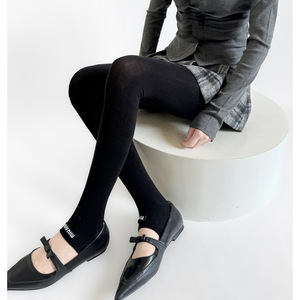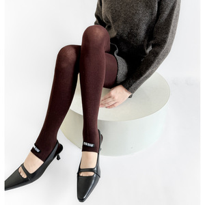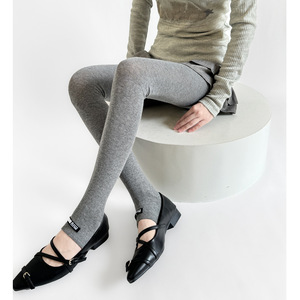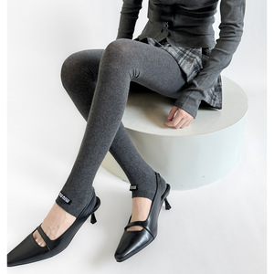 秋冬miu系走秀款棉平板半掌式踩脚袜裤字母布标ins风灰色系打底裤