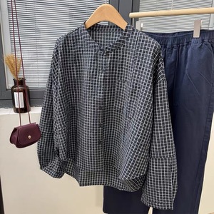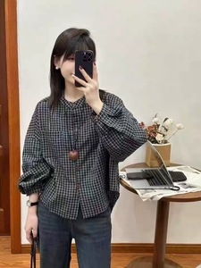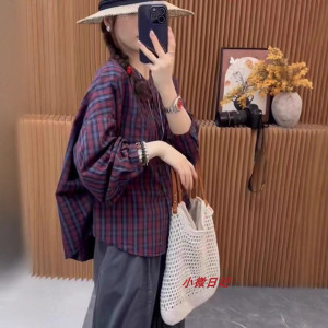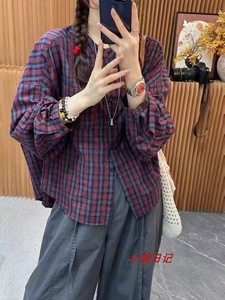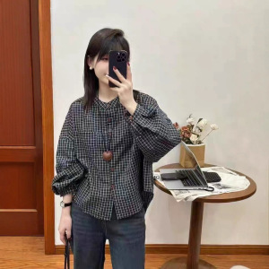 美式复古蓝色格子衬衫外套女2025秋季新款慵懒衬衣宽松长袖上衣潮