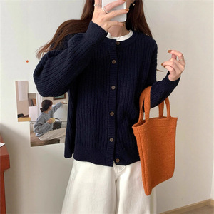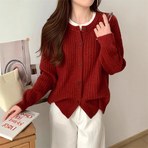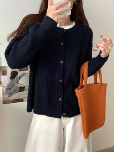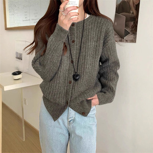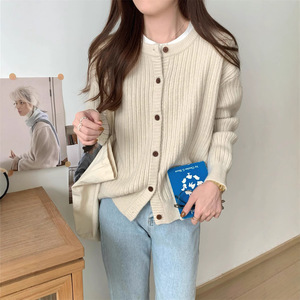 圆领针织开衫女韩版复古2025秋冬季新款温柔慵懒风百搭毛衣外套