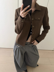 槿一 东京故事 设计摩登翻领蜡感工艺外套百搭工装风夹克复古通勤