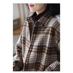 2025春秋新款女士长袖衬衫格子大码女装时尚洋气上衣