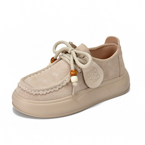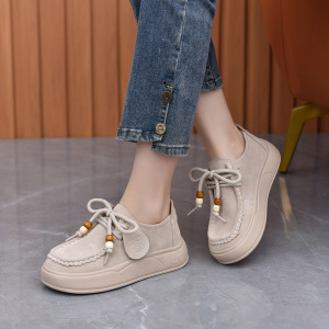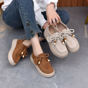 袋鼠鞋真皮勃肯鞋女2025新款秋季百搭系带复古女鞋子休闲厚底单鞋
