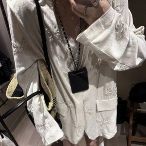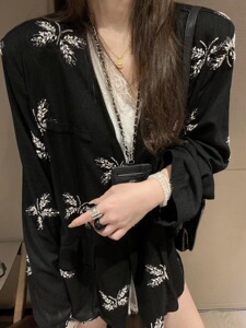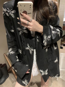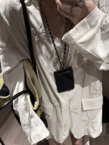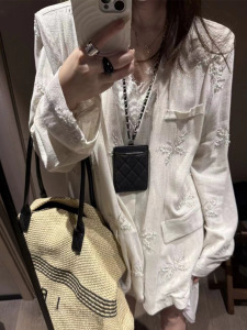 2025秋季新款小众重工黑色手工钉珠亚麻西装女
