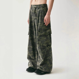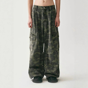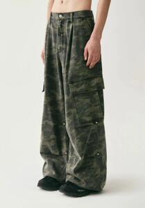 25年秋冬AVANDRESS韩国代购宽松复古高腰迷彩工装裤牛仔裤