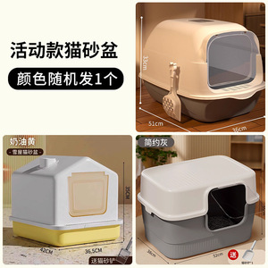 半封闭猫砂盆米色50cm+猫砂垫【送猫砂铲】✦★