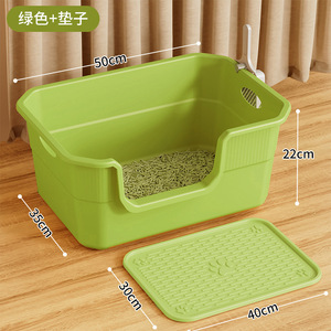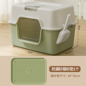 半封闭猫砂盆果绿色50cm+防漏沙猫砂垫✦★