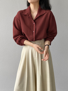 江左利亚德画家天丝亚麻韩系纯色长袖衬衣女叠穿女式衬衫秋装6323