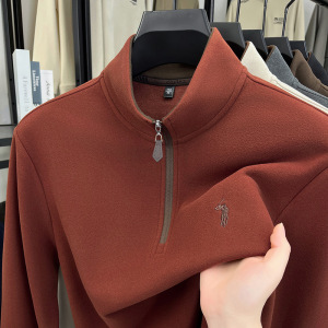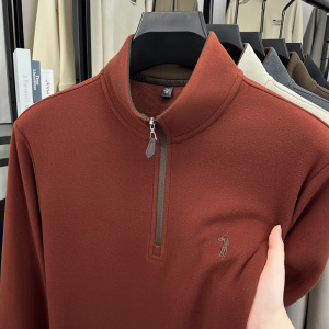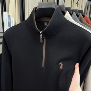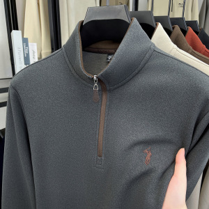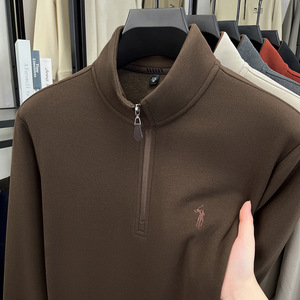 春秋季男士长袖T恤半拉链立领打底衫商务休闲小马标半拉链卫衣男