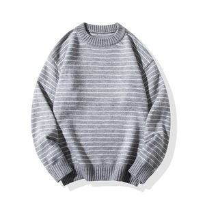 简恒新款针织条纹圆领毛衣男士休闲百搭舒适情侣长袖卫衣潮牌保暖