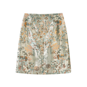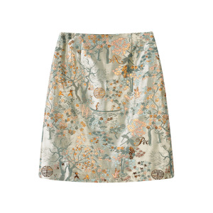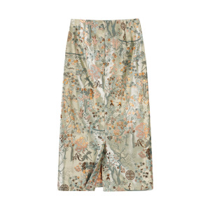 国风刺绣半身裙高腰复古提花裙子女春秋装新款显瘦一步包臀a字裙