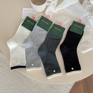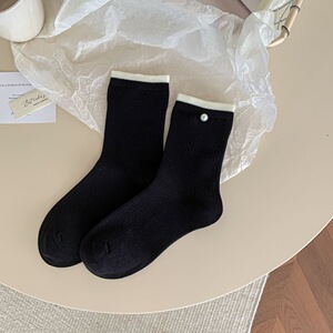远润家25秋冬新款女袜中筒袜学院风卷边运动袜ins潮韩系简约棉袜