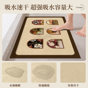 油画风浴室地垫硅藻泥吸水垫卫生间厕所门口防滑脚垫免洗地毯门垫