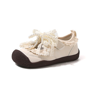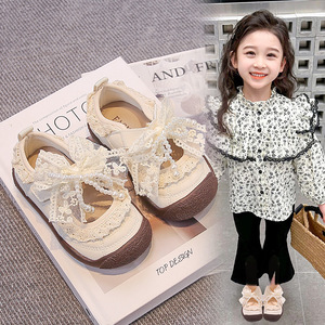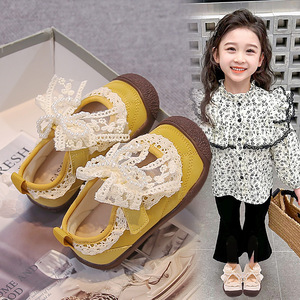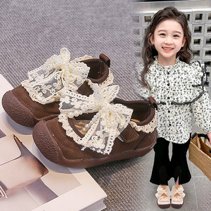 洛丽塔蕾丝儿童小皮鞋蝴蝶结童鞋2025春秋新款小童幼儿园室内软底