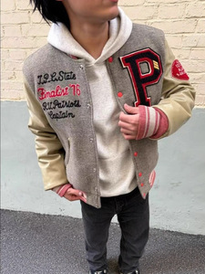 跨境棒球服美式复古高街字母毛巾袖男春秋潮嘻哈宽松休闲夹克外套