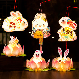 中秋节灯笼2025儿童古风手提兔子莲花灯幼儿园亲子手工diy材料包
