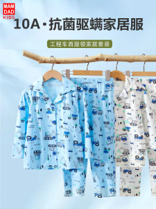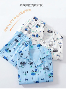 男童睡衣套装秋冬新款宝宝纯棉翻领家居服套装中大儿童睡衣A类