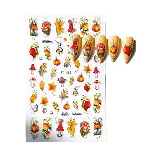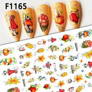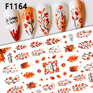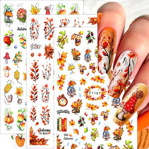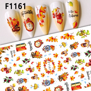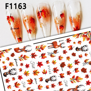 跨境新款美甲贴纸秋季枫叶感恩节枫叶松鼠3D背胶枫叶指甲贴纸