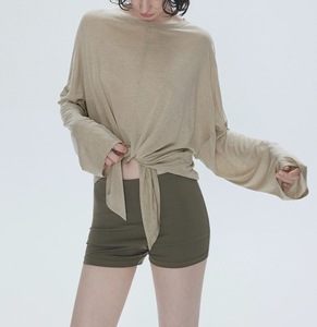轻氧时刻_时髦绑带长袖T恤女_微透防晒罩衫运动休闲上衣浅卡其