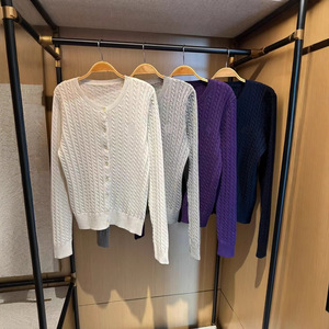031954 女士纯色开衫2025秋冬新款圆领麻花针织衫宽松外套