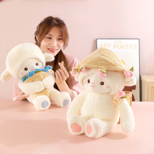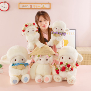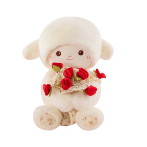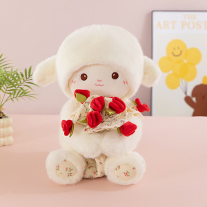跨境爆款抱玫瑰花帽子小羊毛绒公仔送情侣生日礼物可爱布娃娃玩偶