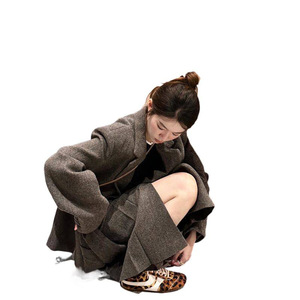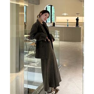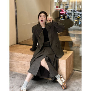 复古风气质高级感宽松西装外套开衩半身裙女冬文艺感韩系别致套装