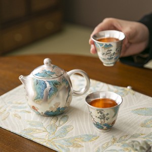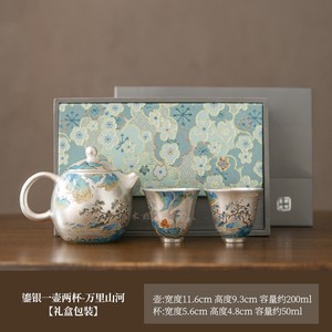 鎏银万里山河茶具套装家用中式陶瓷一壶两杯华丽内繁而不杂礼盒装