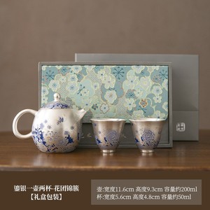 鎏银一壶两杯-花团锦簇(礼盒装)