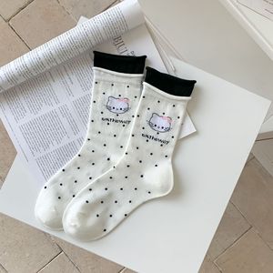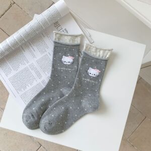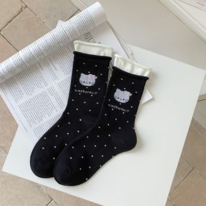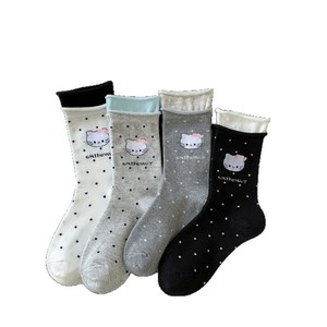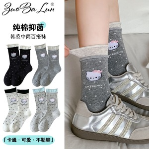 全棉袜子女秋季韩系可爱卡通小猫潮袜纯棉百搭无骨中筒袜女士棉袜
