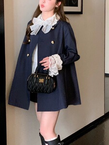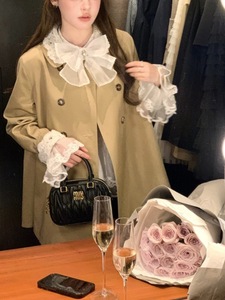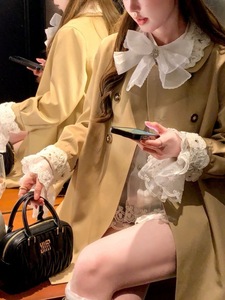 法式富家千金风蕾丝娃娃领风衣女宽松外套秋季 可拆卸领袖