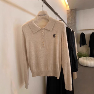 含羊毛兔绒2025秋季减龄十三行IMISS极简刺绣polo领针织衫毛衣女