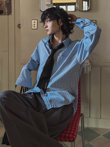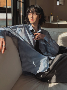 MYQ日系条纹长袖衬衫男士秋季宽松休闲衬衣韩系通勤老钱风穿搭