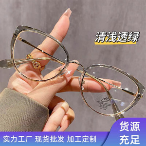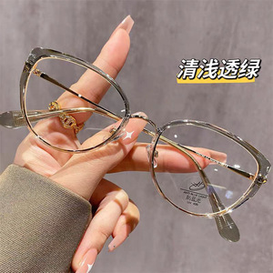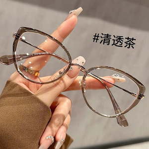 2025新款美式猫眼女士老花镜清透防蓝光高清洋气眼镜显年轻老花镜