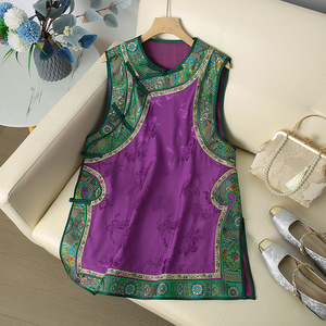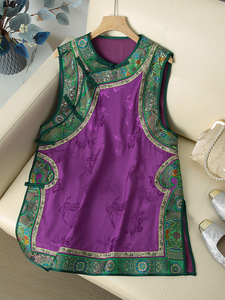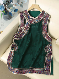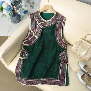 批发一件代发新中式国风唐装马甲裙中长款圆领斜襟无袖背心连衣裙