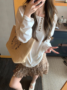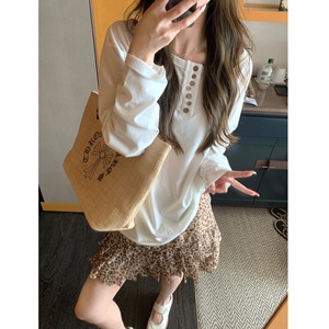 AHENOINE 曲奇饼干 不规则扣罩衫上衣女卷边设计感长袖休闲T恤
