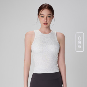 同吉罗纹圆领瑜伽背心女夏带胸垫防震防下垂健身文胸跑步运动内衣
