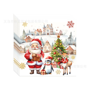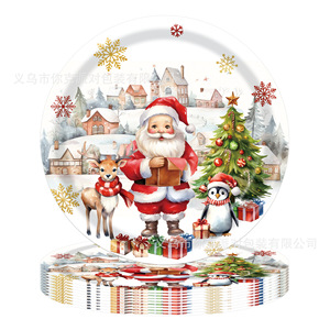 新款白色雪人圣诞节节日派对一次性纸盘纸杯圣诞树麋鹿装饰餐具