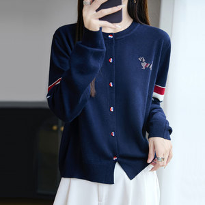 【厂家直供】秋季圆领拼色外套女时尚洋气百搭短款毛衣外搭针织衫