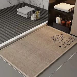 亚麻浴室地垫卫生间吸水厕所门口耐脏防滑洗手间地毯编织印花脚垫