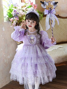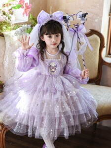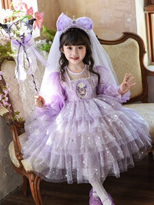 女童秋季新款公主裙库洛米网纱连衣裙女宝宝生日礼服蓬蓬裙蛋糕裙